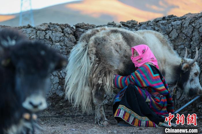 12月12日,西藏自治區(qū)那曲市安多縣帕那鎮(zhèn)牧民土巴卓瑪正準(zhǔn)備擠牦牛奶。帕那鎮(zhèn)位于安多縣中部,是安多縣人民政府所在地,下轄3個(gè)村,3個(gè)居民委員會,12個(gè)自然村,7個(gè)居民小區(qū)。青藏鐵路、青藏公路貫穿全境,交通便利,牛羊成群,景色宜人。中新社記者 貢嘎來松 攝