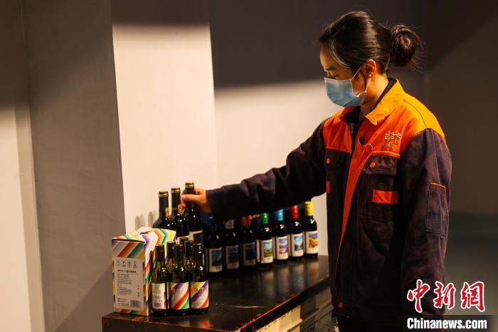 芒康縣在種植葡萄方面有著悠久的歷史,因干熱河谷氣候優(yōu)勢明顯,紫外線強、光線充足,適宜大面積栽種無公害綠色釀酒葡萄。圖為工作人員檢查瓶儲區(qū)葡萄酒狀態(tài)。中新社記者 薛蒂 攝