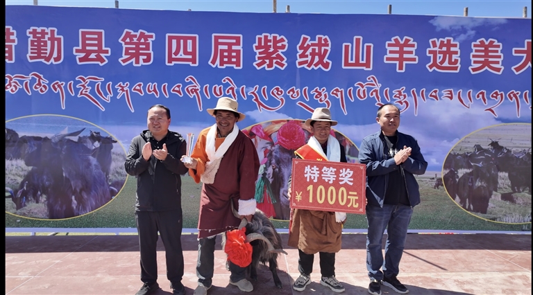 措勤縣紫絨山羊選美大賽現(xiàn)場。