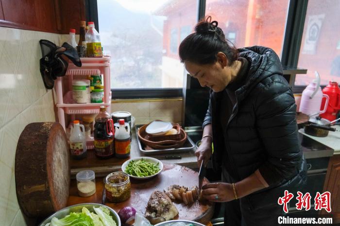 圖為12月13日,西藏波密易貢伴山云水小院家庭旅館啊牛在為客人準備晚飯。記者 江飛波 攝