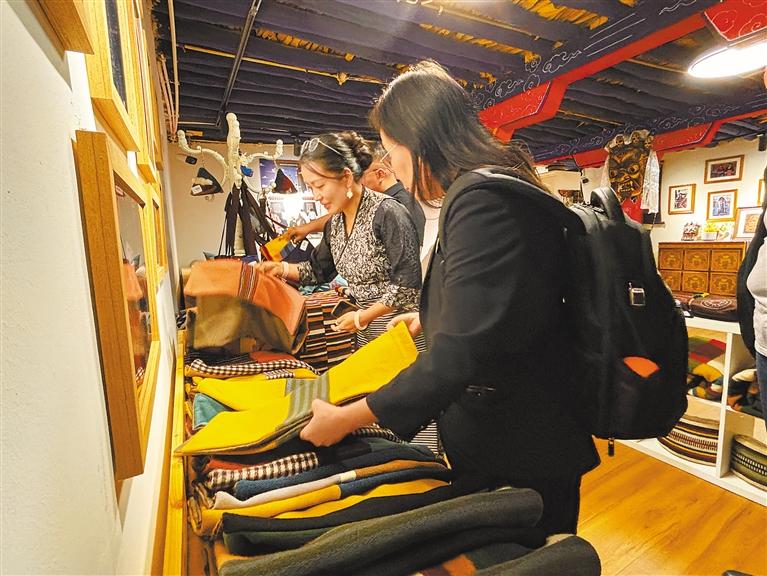 走進(jìn)夏扎大院的卓番林·措瓦店,琳瑯滿目的手工藝品令人目不暇接。從細(xì)節(jié)滿滿的玩偶到織藝精湛的藏毯,從匠心獨(dú)運(yùn)的手工編織包包到別具一格的民族飾品,無(wú)一不是手工藝人心血凝聚。卓瑪介紹,卓番林·措瓦力求融合傳統(tǒng)與現(xiàn)代,用飽含情感的產(chǎn)品,傳承精湛技藝,讓西藏手工藝融入家庭溫馨記憶。