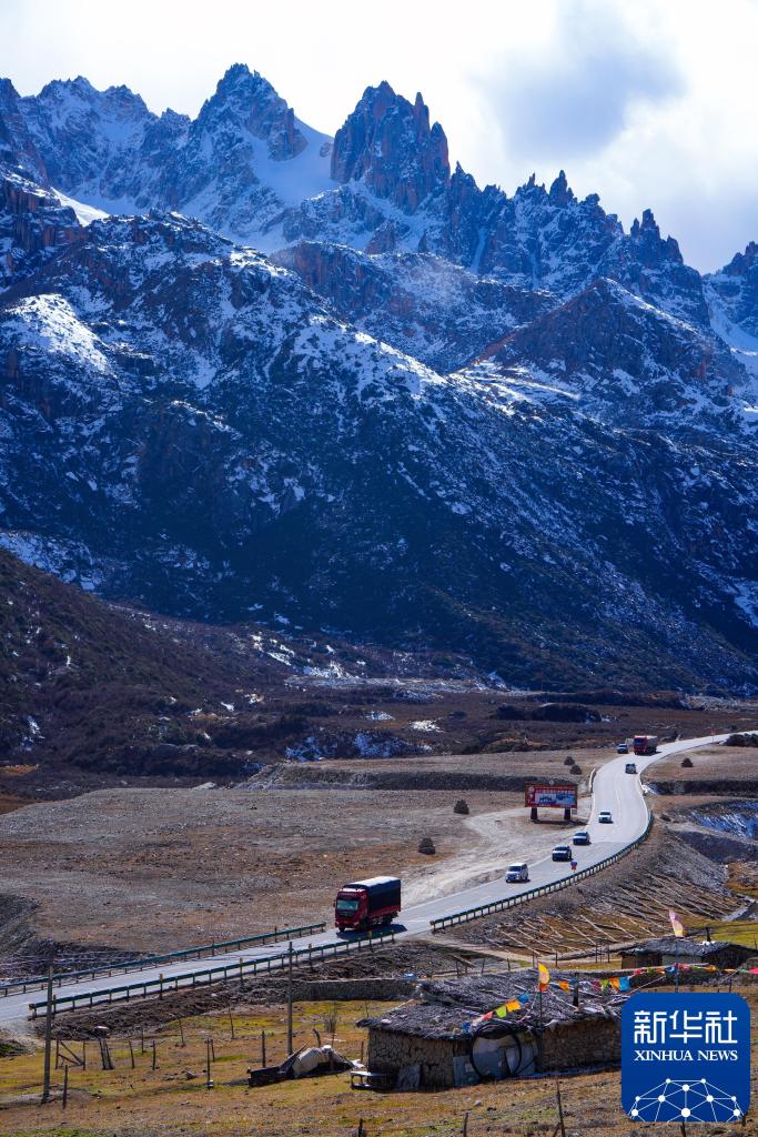 2024年11月1日,在四川省甘孜藏族自治州德格縣,車輛穿過雀兒山隧道后行駛在川藏公路上。新華社記者 沈伯韓 攝