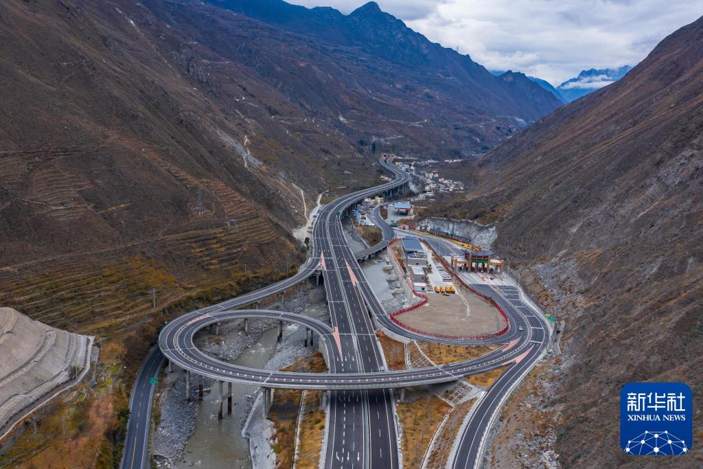 這是2020年12月20日拍攝的汶馬高速桃坪互通(無人機(jī)照片)。新華社發(fā)(阿壩州委宣傳部供圖)