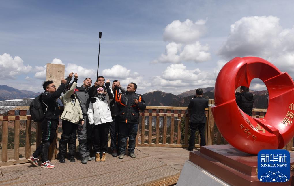 2021年5月2日,在西藏芒康縣拉烏山,騎行摩托的年輕人在一起合影。新華社記者 陳燮 攝