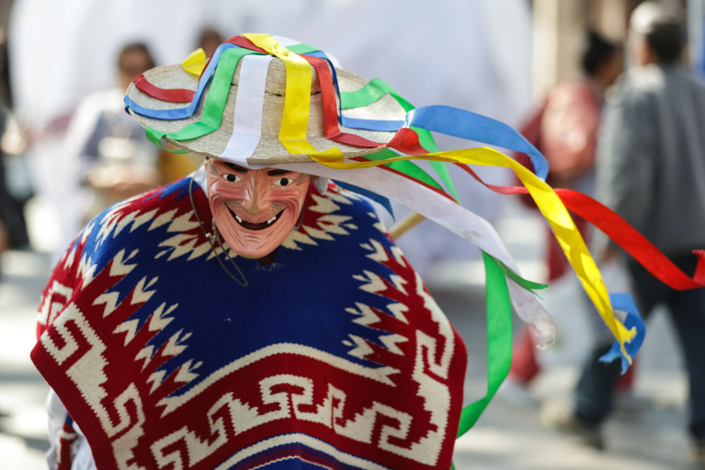 墨西哥面具舞中的“老者之舞”是墨西哥米卻肯州最具代表性的傳統(tǒng)舞蹈之一,起源于普列佩查原住民文化。這種舞蹈以其充滿活力的表現(xiàn)形式和文化象征而聞名,據(jù)說發(fā)展自墨西哥獨(dú)立之前人們向心目中的神明祈求豐收的儀式。在木屐的聲響與裝飾草帽的彩色絲帶互相映襯之下,每當(dāng)老者之舞上演,米卻肯州帕茨夸羅的廣場便化身為一座承載古老記憶的舞臺。