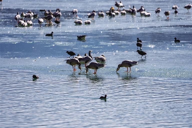 黑頸鶴,作為國家一級保護(hù)動物,其數(shù)量的增加尤為令人欣喜。它們身姿優(yōu)雅,在濕地中翩翩起舞,宛如大自然的精靈。而斑頭雁和赤麻鴨也成群結(jié)隊地在水中暢游,歡快的叫聲回蕩在空中,為濕地增添了無限的生機(jī)與活力。