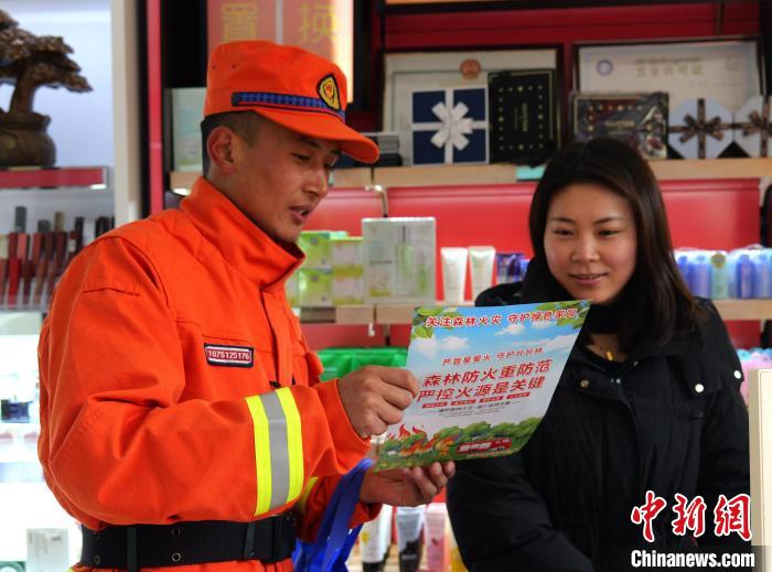 圖為西藏森林消防總隊(duì)林芝支隊(duì)巴宜區(qū)中隊(duì)元旦假期防火專項(xiàng)行動(dòng)中開(kāi)展流動(dòng)宣傳。西繞拉翁 攝