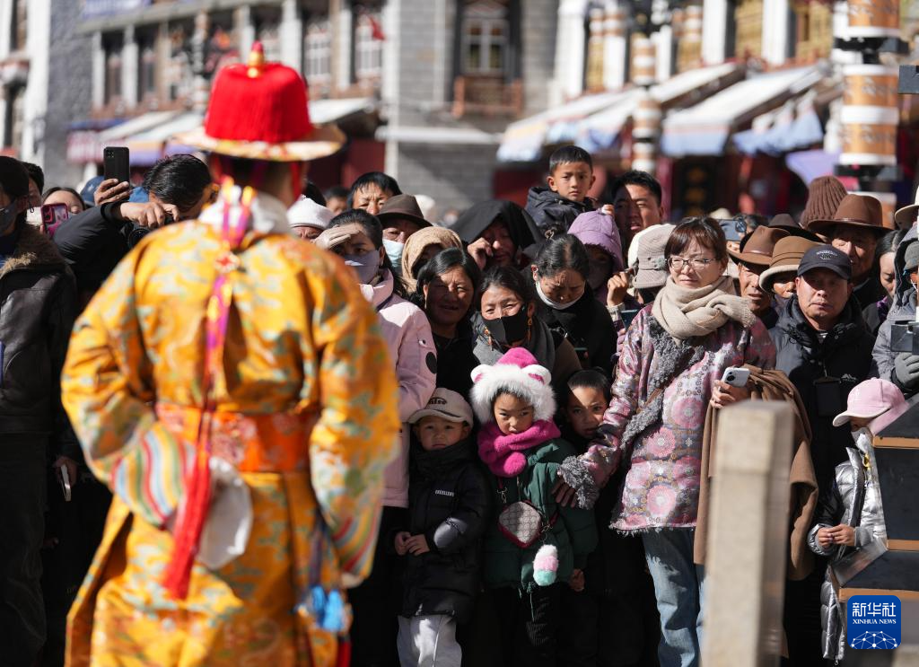 作為拉薩市文化和旅游局主辦的“繁飾自然·衣彩拉薩——拉薩新年服飾秀”群眾文化活動的一部分,1月3日,穿著傳統(tǒng)藏裝的模特巡游在拉薩八廓街。