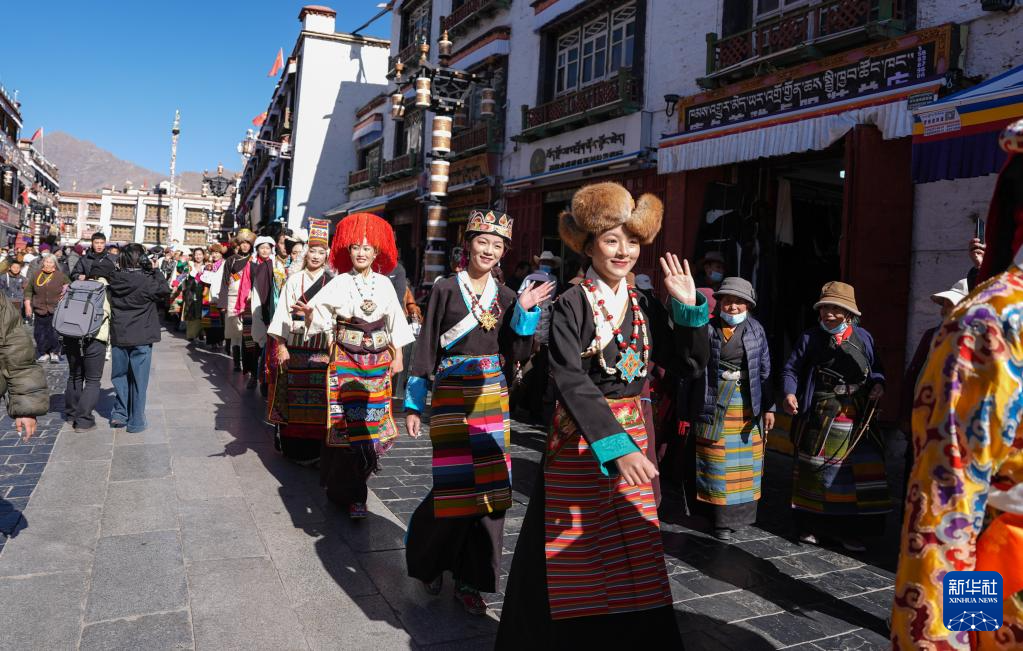 1月3日,模特在拉薩八廓街巡游。新華社記者 晉美多吉 攝