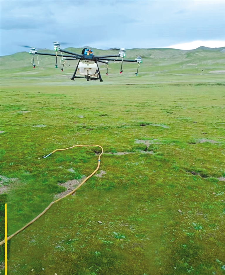 據(jù)介紹,高原毛蟲是西藏高原牧區(qū)的重要害蟲,多發(fā)生在海拔3000至5000米的高山草原,對(duì)莎草科、禾本科、豆科、蓼科、薔薇科等各類牧草危害嚴(yán)重,嚴(yán)重影響牧草生長和畜牧業(yè)的發(fā)展。在項(xiàng)目實(shí)施過程中,項(xiàng)目組確定使用植保無人機(jī)噴藥,防治高原毛蟲。