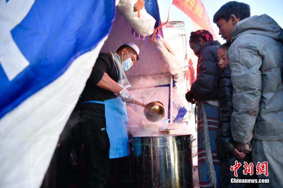 1月8日,西藏自治區(qū)日喀則市定日縣長所鄉(xiāng)強(qiáng)嘎村,愛心企業(yè)為受災(zāi)民眾提供熱氣騰騰的牛肉面。1月7日9時5分,西藏自治區(qū)日喀則市定日縣發(fā)生6.8級地震,震源深度10公里。圖為愛心企業(yè)為受災(zāi)民眾提供免費(fèi)牛肉面。中新社記者 貢嘎來松 攝