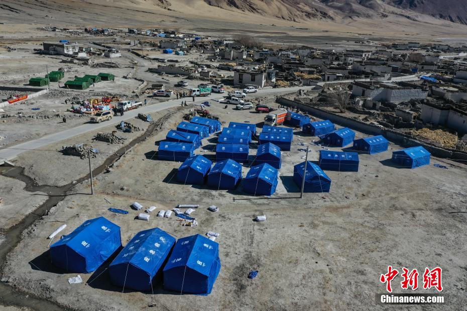 1月8日,西藏自治區(qū)日喀則市定日縣長所鄉(xiāng)強(qiáng)嘎村,愛心企業(yè)為受災(zāi)民眾提供熱氣騰騰的牛肉面。1月7日9時5分,西藏自治區(qū)日喀則市定日縣發(fā)生6.8級地震,震源深度10公里。圖為定日縣長所鄉(xiāng)強(qiáng)嘎村安置點(diǎn)。(無人機(jī)照片)中新社記者 貢嘎來松 攝