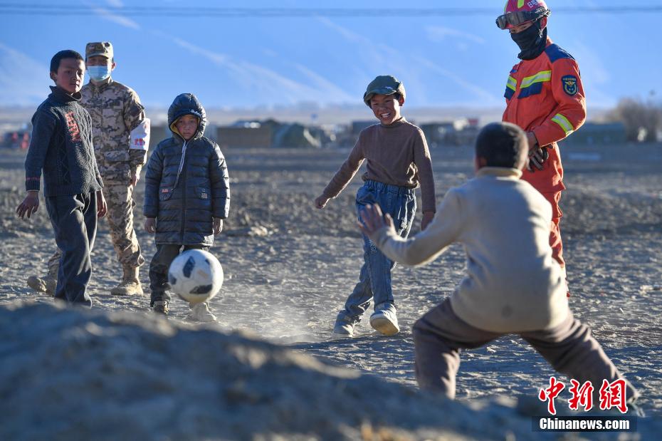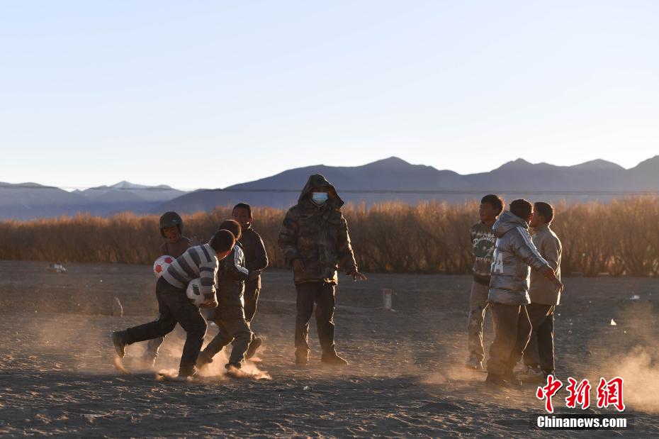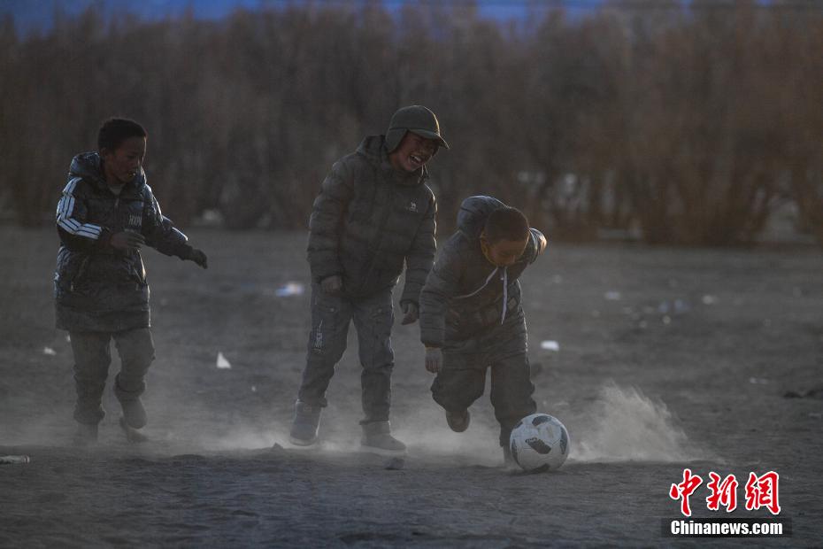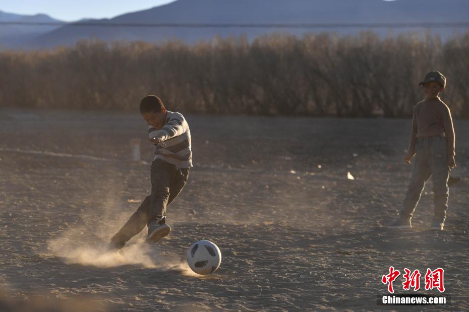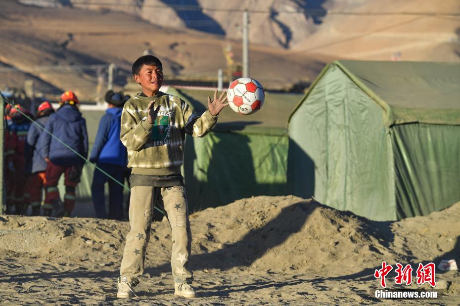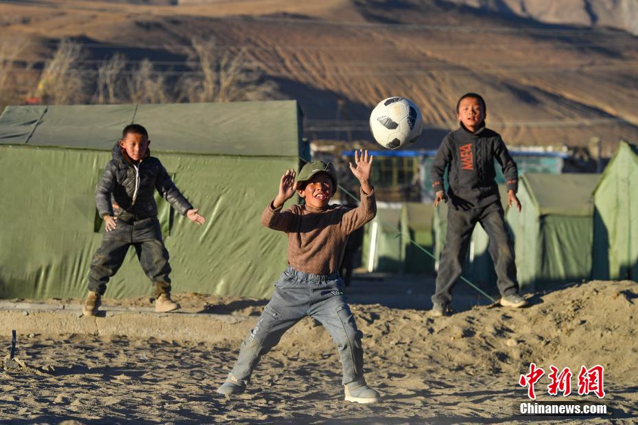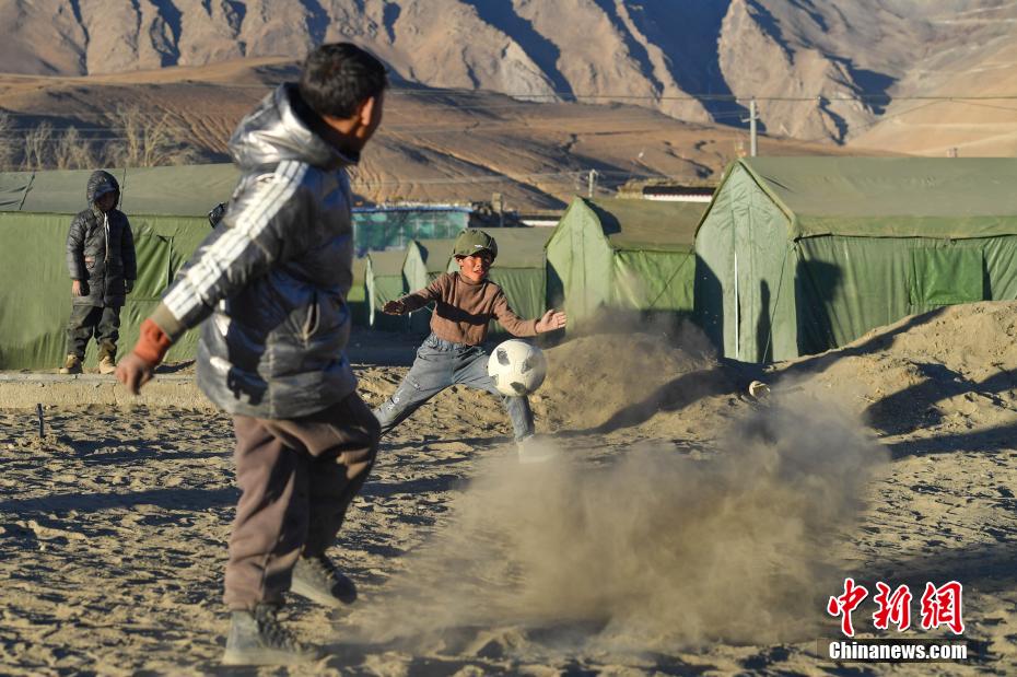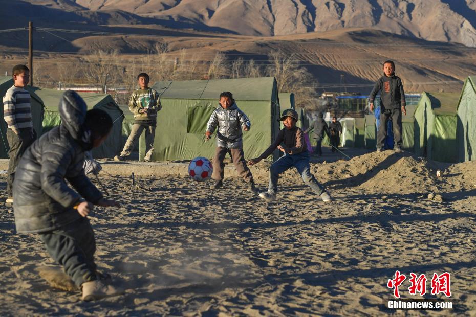 1月10日,在西藏日喀則市定日縣長(zhǎng)所鄉(xiāng)森嘎村安置點(diǎn),夕陽(yáng)下,孩子們分組開展點(diǎn)球大戰(zhàn)。地震雖給村莊帶來(lái)傷痛,但安置點(diǎn)物資保障充足,孩子們?cè)谄D苦環(huán)境中仍保持樂(lè)觀,用簡(jiǎn)單的游戲傳遞著對(duì)生活的熱愛和希望。貢確 攝
