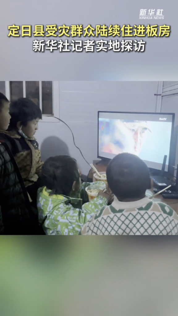 11日,西藏定日縣長所鄉(xiāng)古榮村板房安置點(diǎn)接通寬帶、IPTV網(wǎng)絡(luò)電視。孩子們圍坐在電視機(jī)前,說想要觀看電影《戰(zhàn)狼》。這是此次西藏定日縣6.8級(jí)地震災(zāi)區(qū)第一個(gè)接通有線千兆寬帶和IPTV網(wǎng)絡(luò)電視、實(shí)現(xiàn)Wi-Fi覆蓋的活動(dòng)板房。