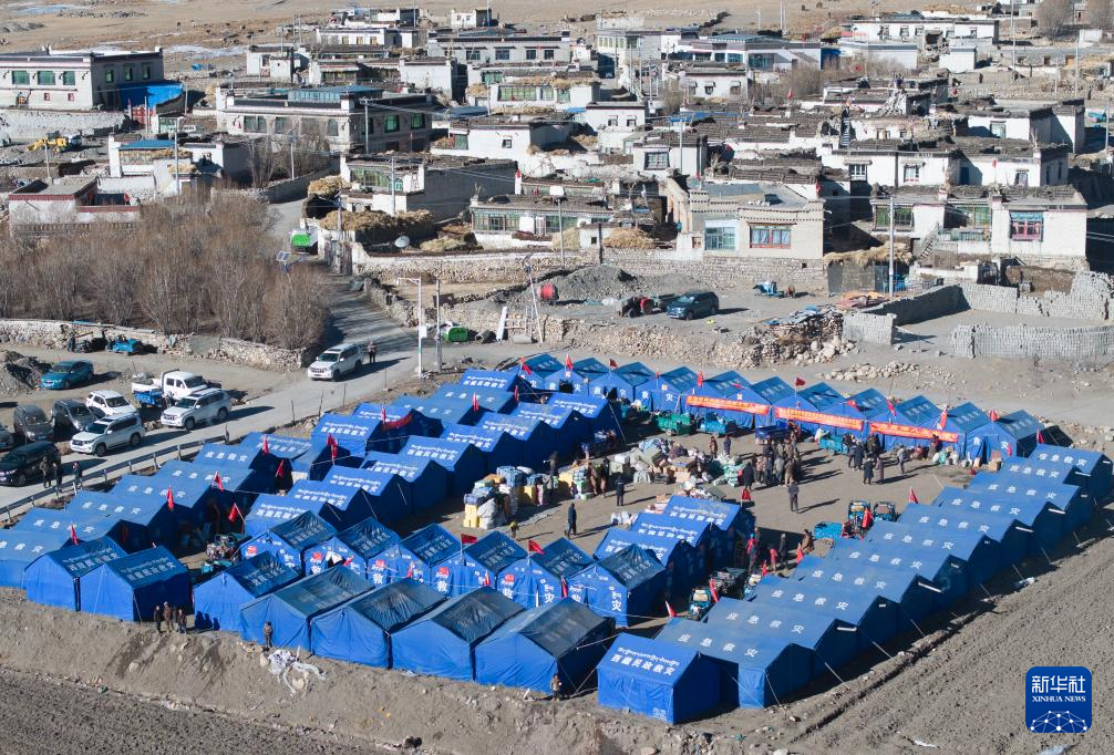 1月11日拍攝的薩迦縣麻布加鄉(xiāng)普村安置點(diǎn)(無人機(jī)照片)。新華社記者 李響 攝