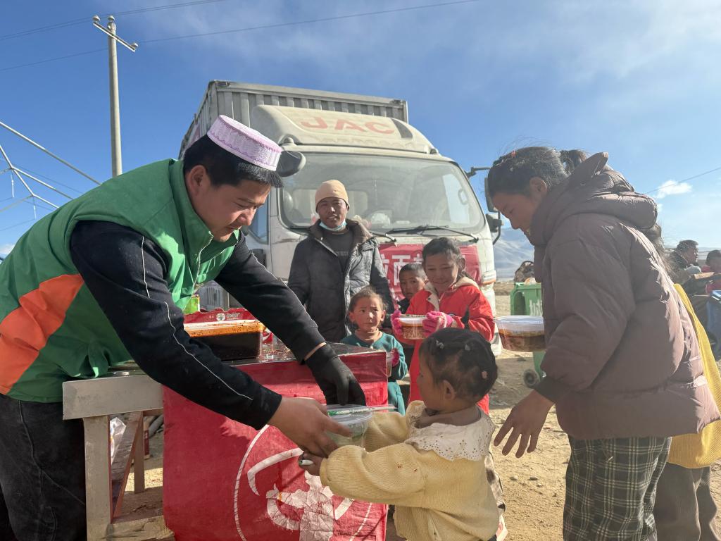西藏定日6.8級地震發(fā)生后第二天,看到地震的消息,馬杰和朋友立馬帶上物資奔赴災(zāi)區(qū)救援一線。一行5人從甘肅臨夏出發(fā),驅(qū)車2700多公里,10日到震中后便開始給受災(zāi)群眾免費(fèi)做拉面。