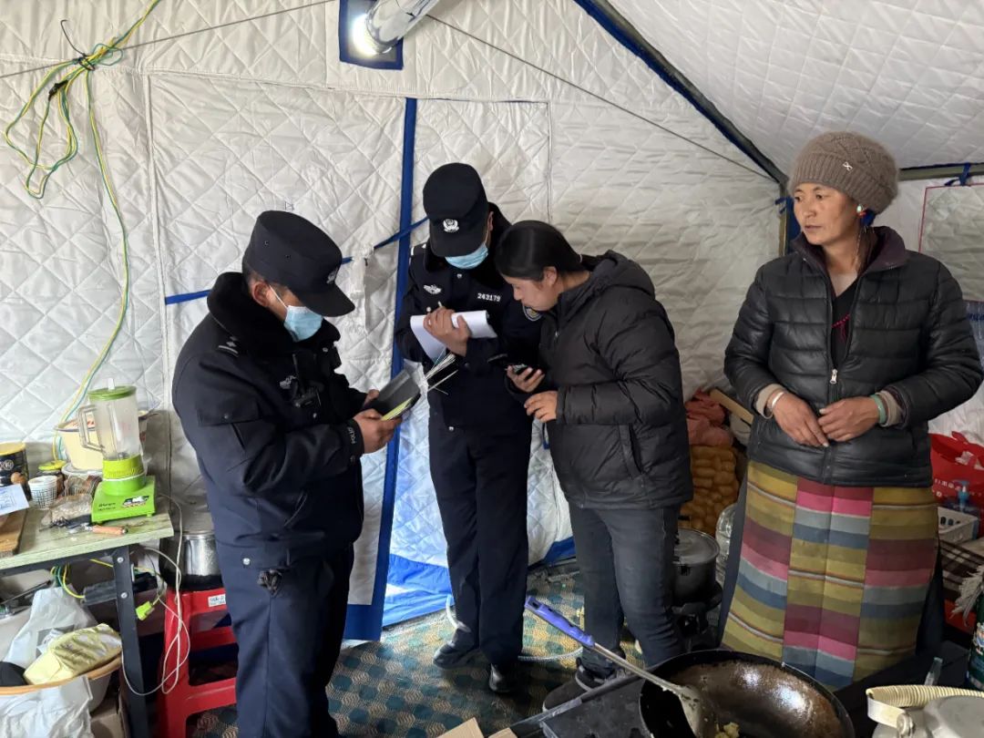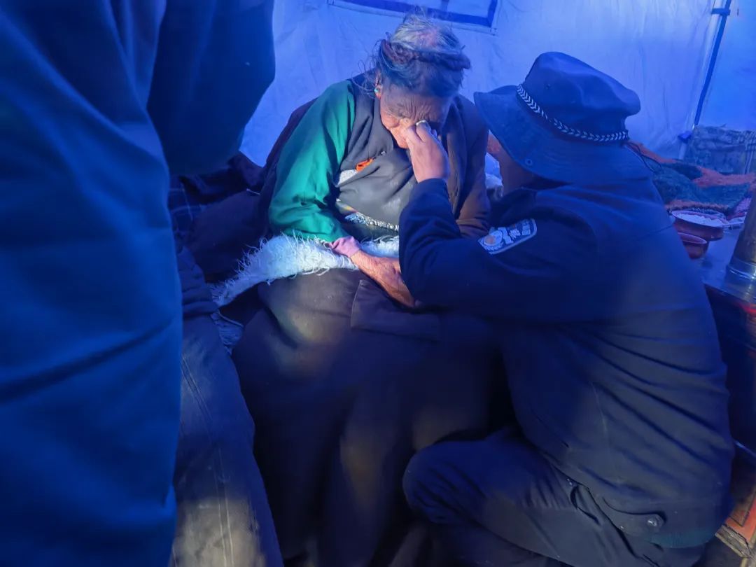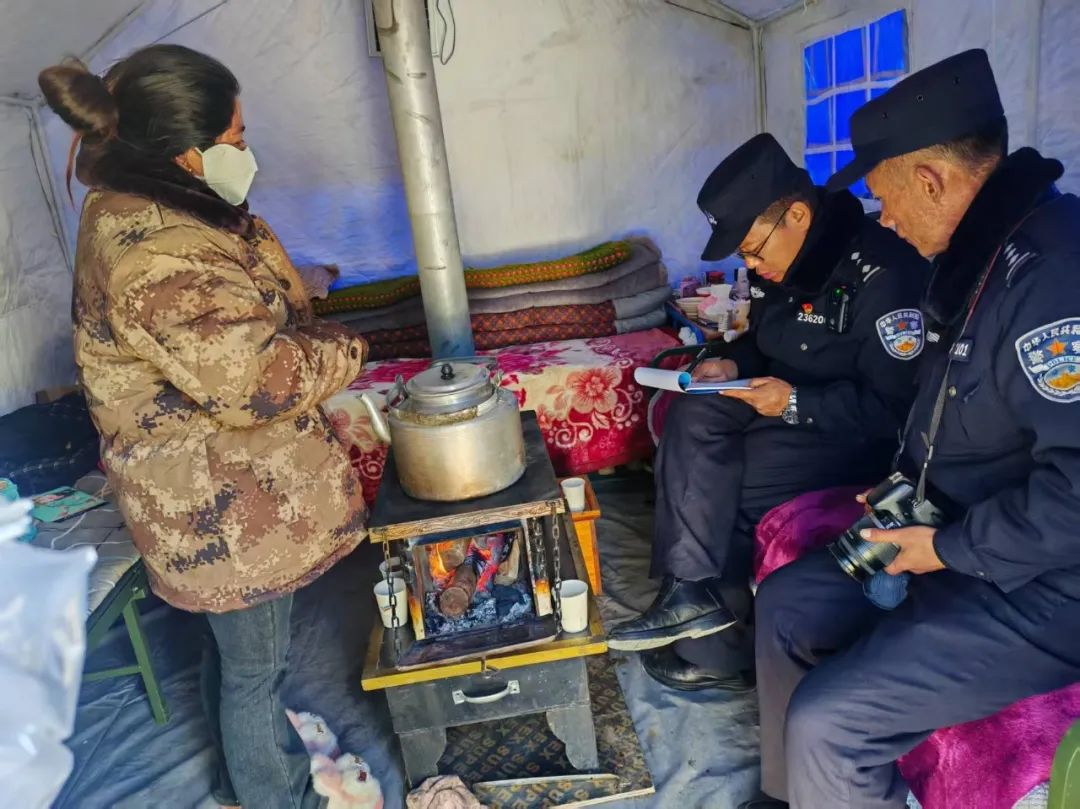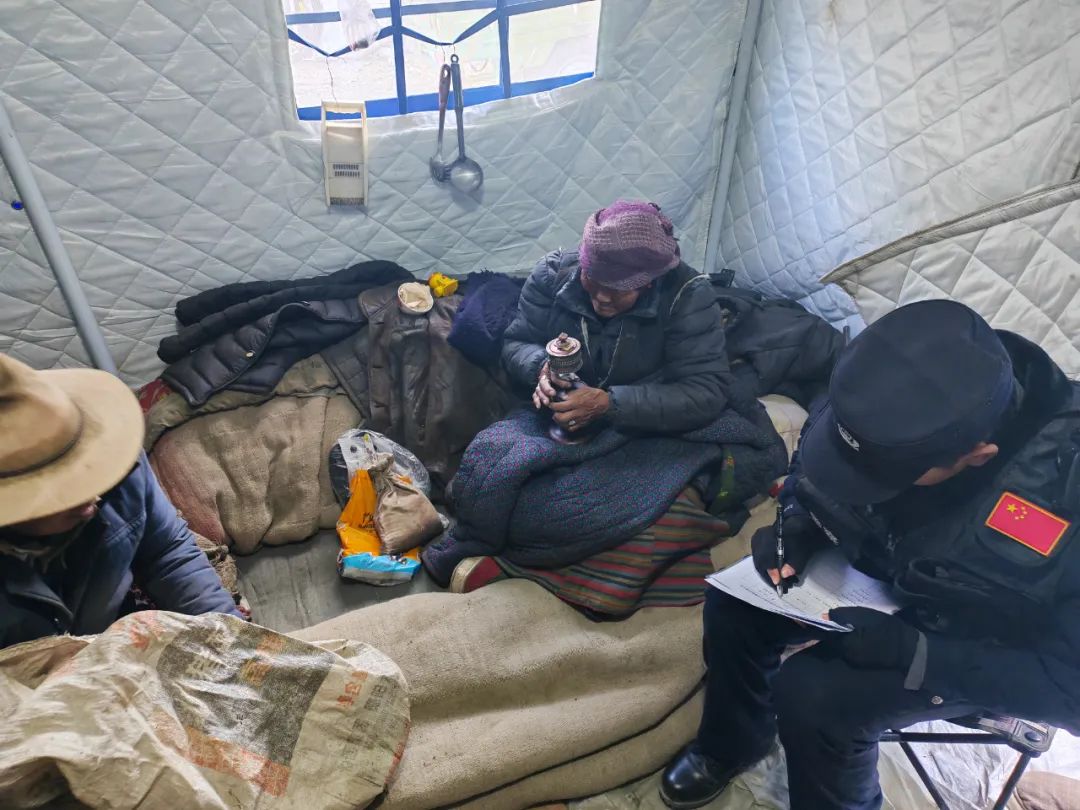 民輔警們穿梭于安置點的帳篷間,每到一處,都與群眾親切交談?!巴砩纤X冷不冷?”“吃飯還習(xí)慣嗎?”簡單的話語,飽含著無盡的關(guān)切。他們神情專注,認(rèn)真傾聽群眾的反饋,無論是基本的衣食住行問題,還是特殊的醫(yī)療需求,都詳細(xì)記錄在冊。對于行動不便的老人與殘疾人,民輔警們更是格外關(guān)注,耐心細(xì)致地詢問他們在生活中遇到的種種困難,力求在第一時間給予解。
