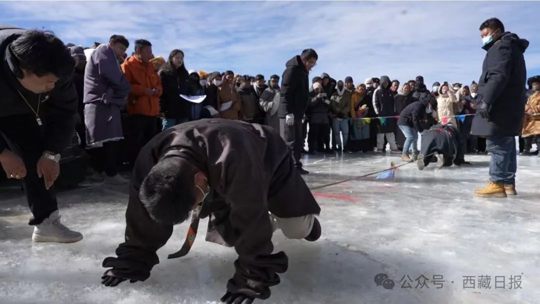 賽場上,傳統(tǒng)冰上項目亮點紛呈。牛嘎滑冰車(個人)賽中,選手身輕如燕,技巧嫻熟,在冰面上風(fēng)馳電掣;木制滑冰車(個人)和親子賽同樣扣人心弦,無論是個人賽的奮勇爭先,還是親子賽的默契配合,都讓觀眾們目不暇接。自由滑冰賽里,大家展現(xiàn)著冰雪運動的自由與奔放。團隊項目更是將氣氛推向頂點。冰上拔河,大家腳蹬冰面、咬緊牙關(guān)、全力拉扯,每一寸繩子的移動都牽動著眾人的心。冰上接力賽中,選手交接棒時的默契配合、全力沖刺,傳遞著團結(jié)與拼搏的力量。吶喊聲、歡呼聲交織在一起,在夯錯湖畔久久回蕩。