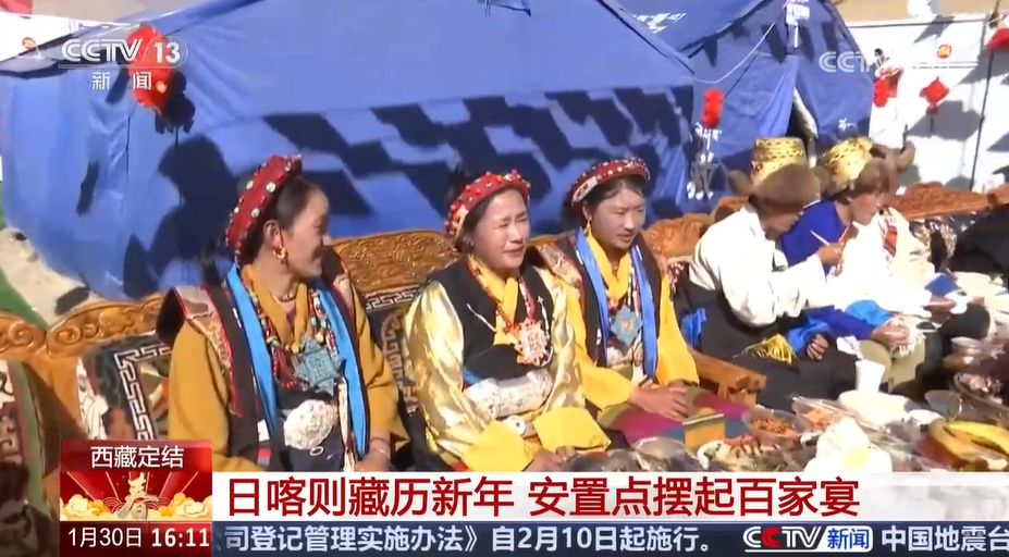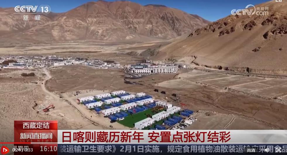 總臺(tái)央視記者 王莉:我現(xiàn)在是在日喀則定結(jié)縣的切村,今天是這里藏歷年的大年初一,是當(dāng)?shù)匾荒曛凶盥≈亍⒆钪匾膫鹘y(tǒng)佳節(jié)。可以看到,現(xiàn)場(chǎng)已經(jīng)裝點(diǎn)得很有節(jié)日的氛圍,家家戶(hù)戶(hù)都貼上了春聯(lián),掛上了喜慶的燈籠和福字。雖然今年在安置點(diǎn)里過(guò)年,但人們依然保持著傳統(tǒng)的習(xí)俗,在這一天,一定要穿上隆重的藏裝,一起吃一頓團(tuán)圓飯。