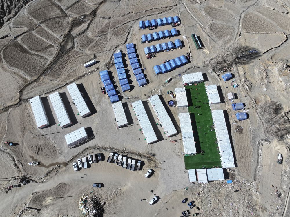 1月28日,定日縣長所鄉(xiāng)古榮村安置點,所有受災群眾已搬入板房(無人機照片)。新華社記者 洛卓嘉措 攝