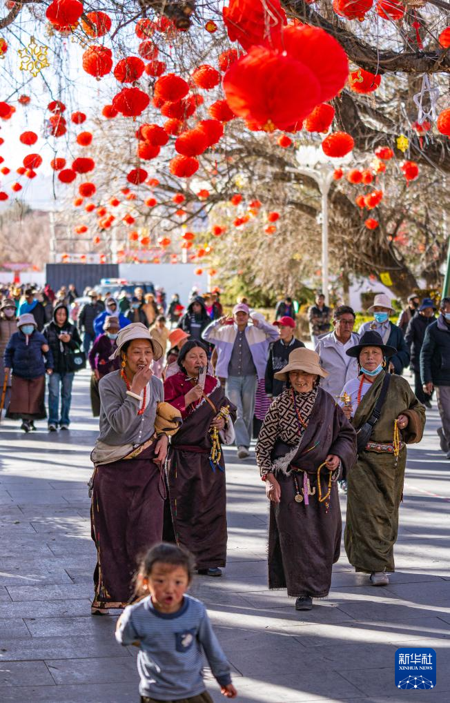 新春佳節(jié)期間,拉薩市在城區(qū)布置了許多春節(jié)裝飾,并開展豐富多彩的文娛活動。當(dāng)?shù)厝罕姾陀慰吐健叭展庵恰?,感受濃濃年味?/p>