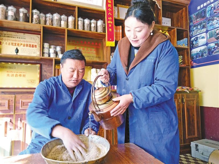 晨曦微露,拉薩市墨竹工卡縣門(mén)巴鄉(xiāng)仁多崗村籠罩在一片靜謐之中。此時(shí),記者走進(jìn)直孔熱色婦女藏藥香加工合作社,一股獨(dú)特的藏香氣息便撲面而來(lái),裊裊娜娜地縈繞在空氣中,仿佛在訴說(shuō)著這個(gè)地方制作藏香增收致富的故事。