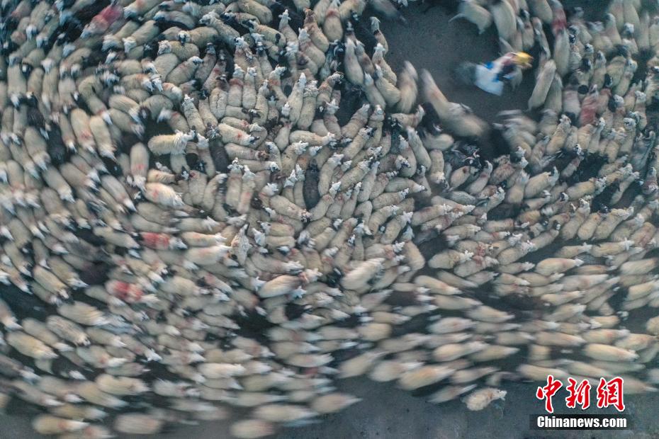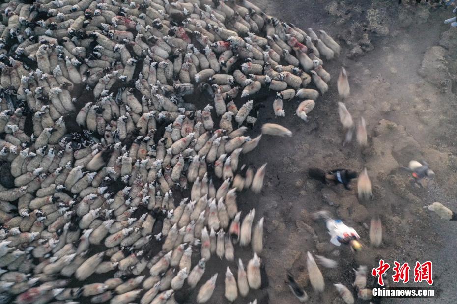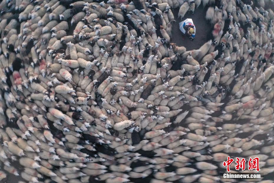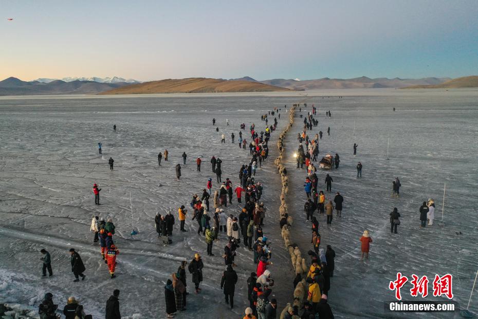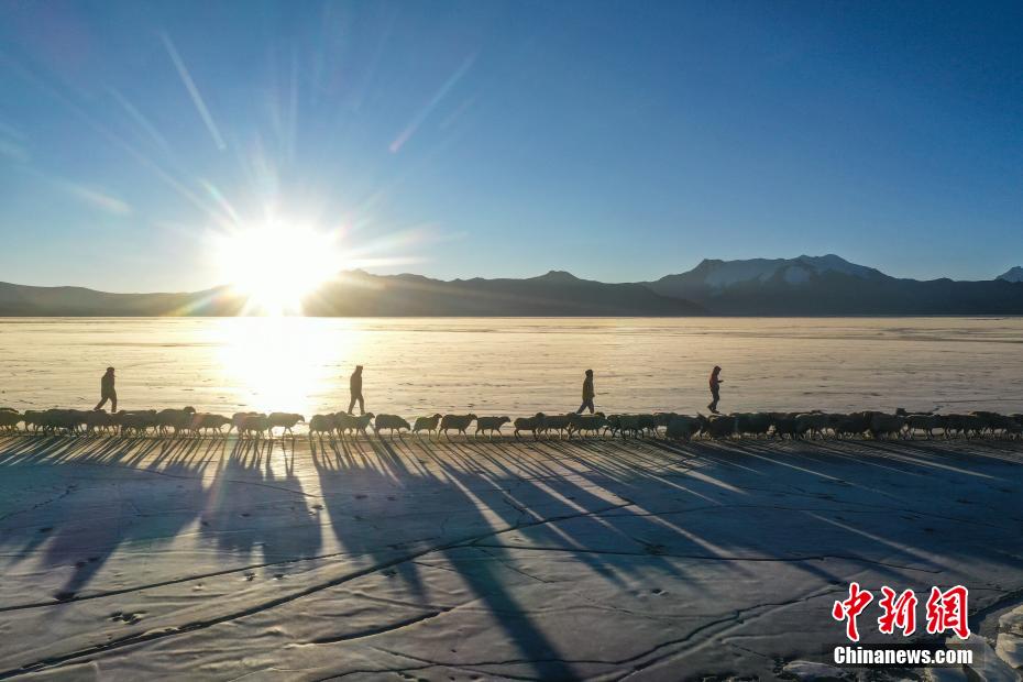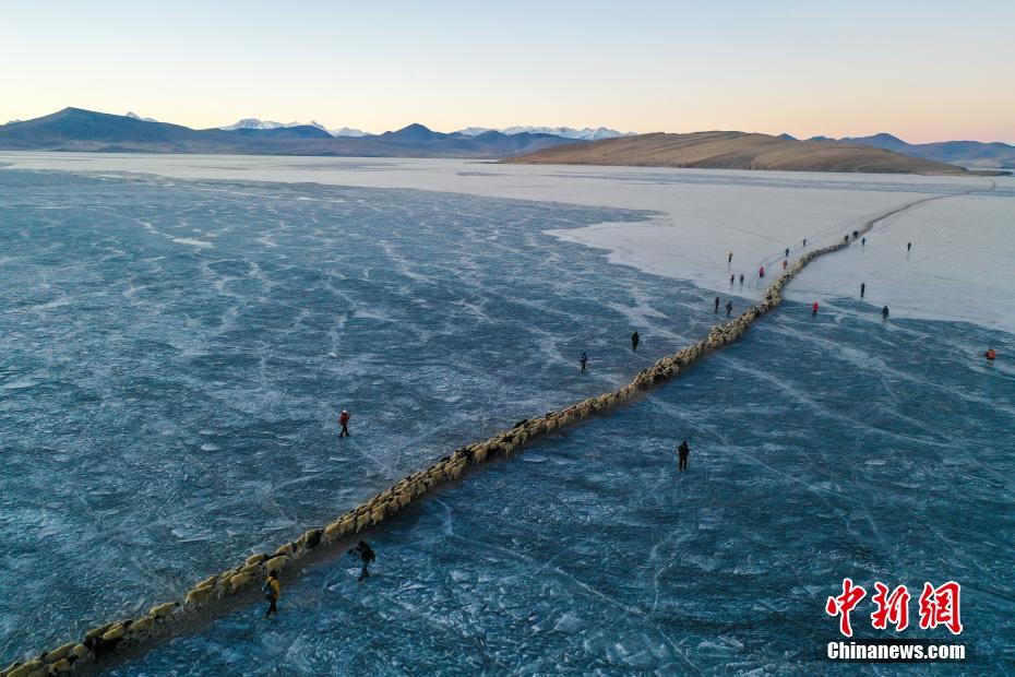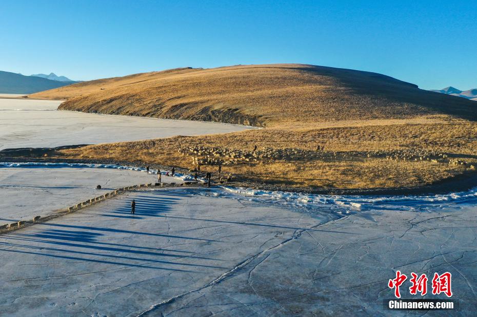 2月7日,西藏山南市浪卡子縣推瓦村1400多只羊通過普莫雍錯冰湖,前往湖心島。據(jù)悉,位于西藏山南市浪卡子縣的推瓦村,平均海拔約5070米,是世界上海拔最高的行政村,以牧業(yè)為主。由于推瓦村海拔高、夏季短,草場無法為羊群提供充足的過冬飼料,因此,每年高原最冷的時候,推瓦村牧民會把羊群趕到普莫雍錯水草豐茂的湖心島,依靠島上的草料度過最寒冷的冬期。圖為羊群通過普莫雍錯冰湖,前往湖心島。(無人機照片)中新社記者 貢嘎來松 攝