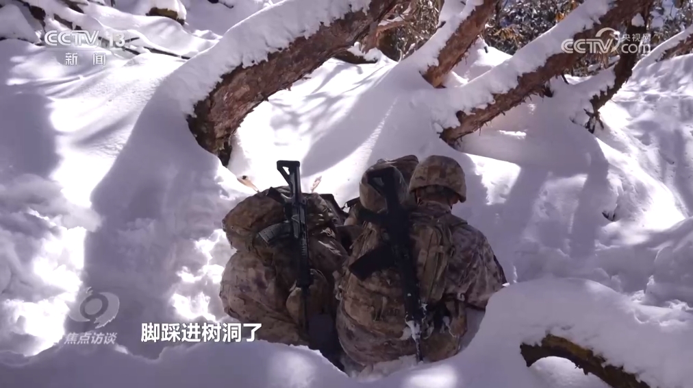 西藏軍區(qū)“墨脫戍邊模范營”某連崔中駿:“一開始聽班長講,我以為比較夸張。但是實際上自己體驗了之后,確實挺累的,路也比較難走,坡比較陡,雪也比較厚,挺滑的,走著走著還容易陷到樹洞里面。”