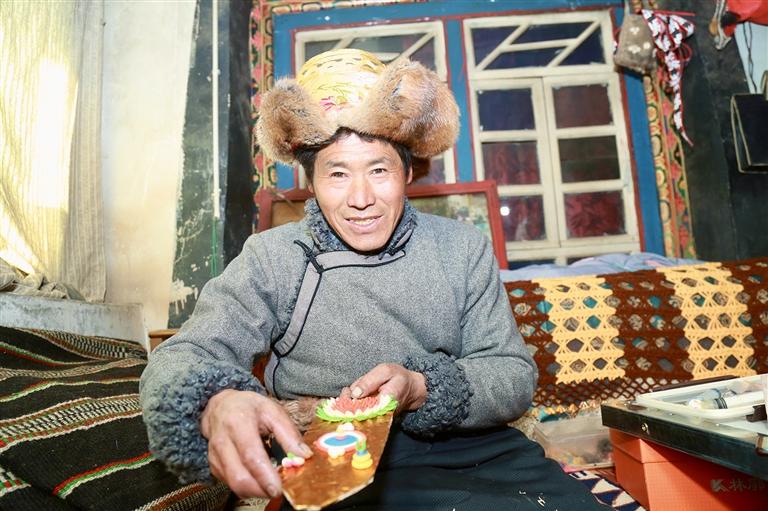 旦索朗正在制作酥油花。圖由果珍提供