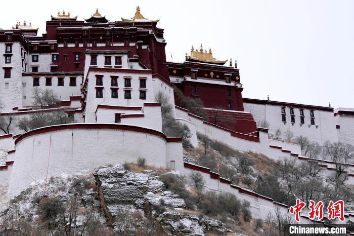 2月19日,西藏拉薩經(jīng)過持續(xù)降雪,城市四周白雪皚皚。雪山、建筑相映成景、風光秀麗。圖為2月19日,雪后布達拉宮。中新社記者 李林 攝