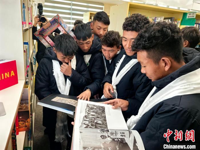 2月20日,參加“跨越山海 以球會友”藏港青少年足球交流活動的西藏自治區(qū)青少年在香港中華基金會中學圖書館翻閱介紹西藏的圖冊。 中新社記者 劉大煒 攝