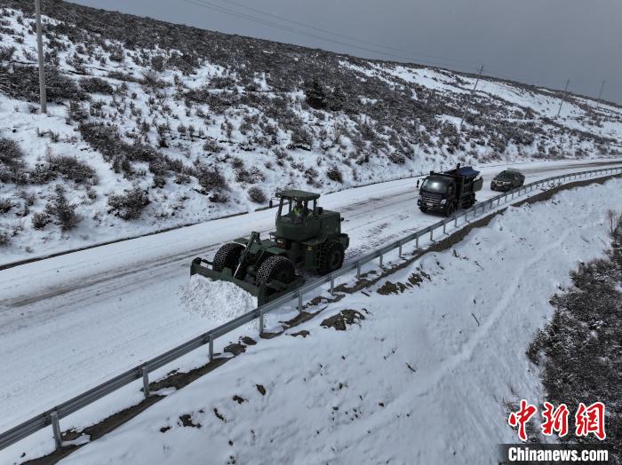 據(jù)了解,災情發(fā)生后,擔負該路段養(yǎng)護保通任務的武警第二機動總隊某支隊官兵迅速啟動道路除雪保通預案,抽組專業(yè)救援力量及大型救援裝備趕赴受阻路段實施搶通。受阻路段平均海拔處于4000米以上,持續(xù)降雪不斷,官兵們首先對滯留人員進行安撫,并發(fā)放食物和藥品等救援物資,為盡快清理路面積雪,官兵采取“機械協(xié)同先通后擴、人機配合高效救援”的方式同步展開作業(yè)。期間,一輛重載半掛車不慎陷入邊溝中,指揮員果斷調(diào)整方案,封控現(xiàn)場、撒布融雪劑、清理四周積雪、鋼絲繩牽引等步驟緊張有序的進行中……伴隨著發(fā)動機的轟鳴聲,車輛被成功救出。