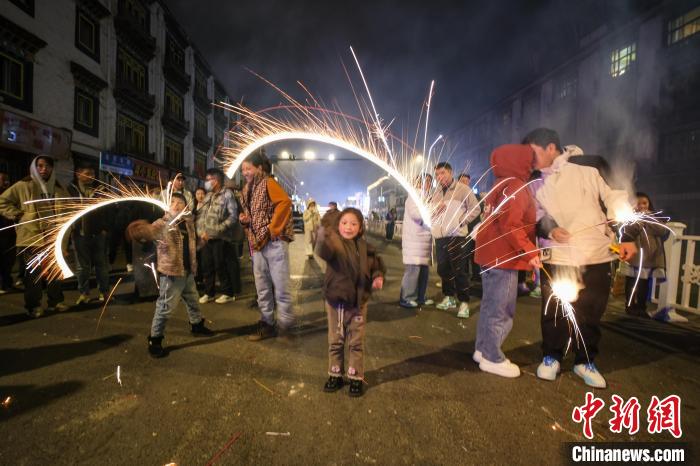 藏歷新年是西藏傳統(tǒng)民俗活動(dòng),也是中國(guó)國(guó)家級(jí)非物質(zhì)文化遺產(chǎn)。2月27日,西藏迎來(lái)一年一度的藏歷新年古突夜(類(lèi)似春節(jié)的除夕),如今過(guò)古突夜,西藏民眾在點(diǎn)燃火把的同時(shí),也會(huì)燃放煙花,古城拉薩煙花璀璨。圖為2月27日晚,孩子們?cè)诶_老城區(qū)街頭燃放煙花,慶祝藏歷新年的到來(lái)。中新社記者 江飛波 攝
