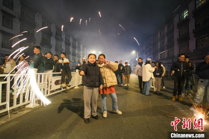 藏歷新年是西藏傳統(tǒng)民俗活動(dòng),也是中國(guó)國(guó)家級(jí)非物質(zhì)文化遺產(chǎn)。2月27日,西藏迎來(lái)一年一度的藏歷新年古突夜(類(lèi)似春節(jié)的除夕),如今過(guò)古突夜,西藏民眾在點(diǎn)燃火把的同時(shí),也會(huì)燃放煙花,古城拉薩煙花璀璨。圖為2月27日晚,拉薩當(dāng)?shù)孛癖娕c游客等在街頭共同慶祝藏歷木蛇新年的到來(lái)。中新社記者 江飛波 攝