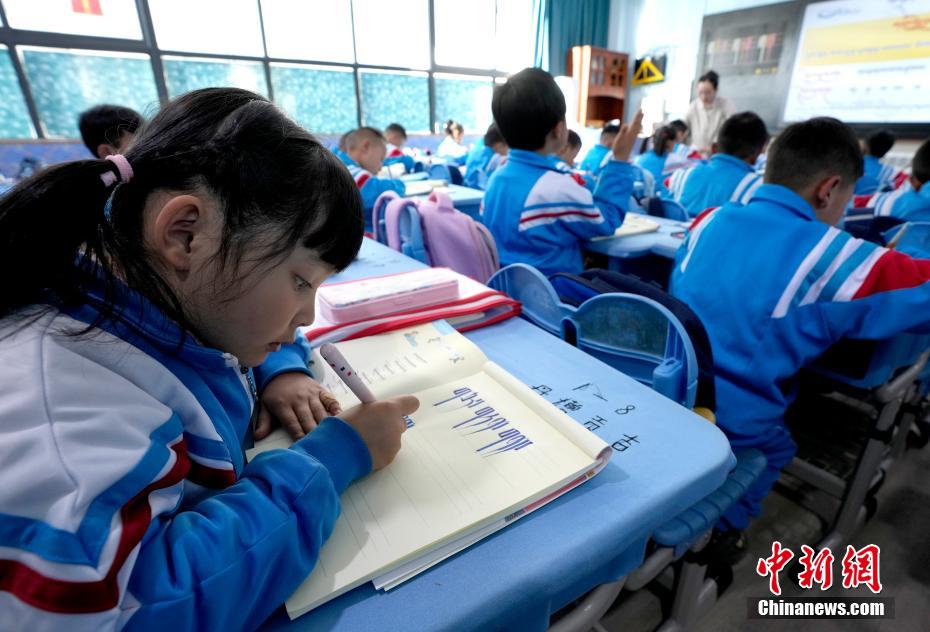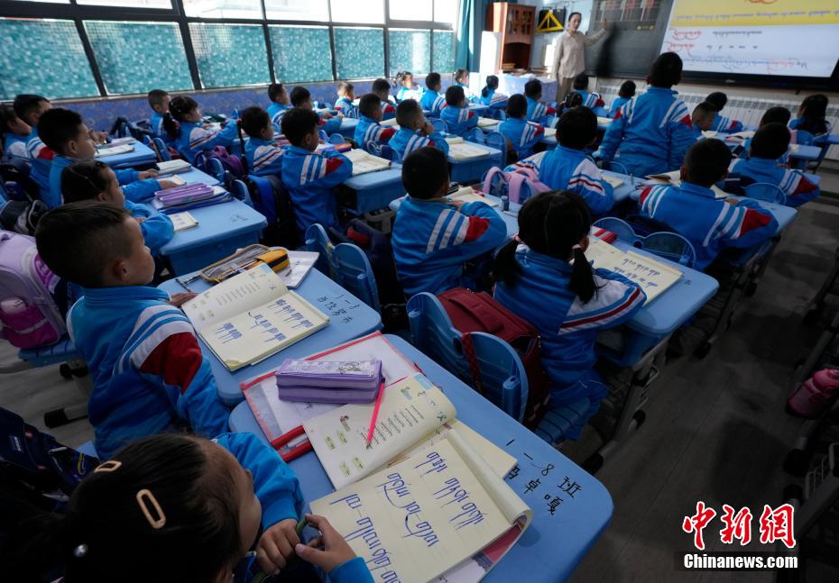 3月10日,拉薩市第一小學(xué)一年級八班學(xué)生們正在上藏語文課。當(dāng)日,西藏拉薩市春季學(xué)期開學(xué),各項教學(xué)工作有序開展。中新社記者 李林 攝