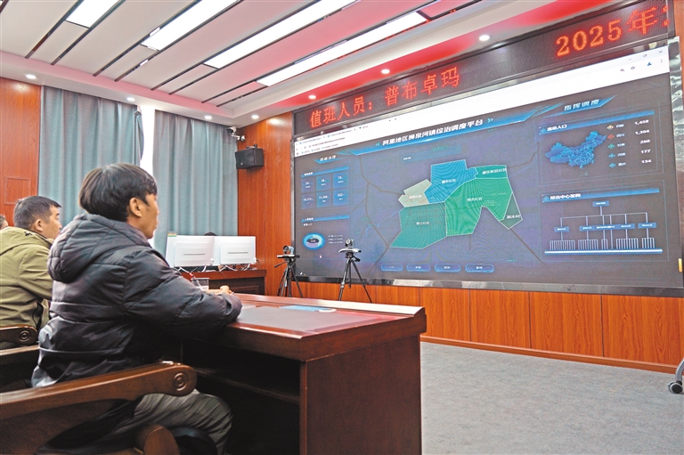 圖為噶爾縣獅泉河鎮(zhèn)綜治中心“一張網(wǎng)”調(diào)度平臺一角。 本報(bào)記者 洛桑旦增 達(dá)珍 攝