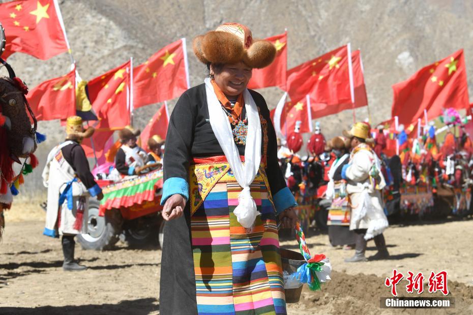 3月16日,西藏拉薩迎來一年一度的傳統(tǒng)春耕儀式。當(dāng)日,拉薩市曲水縣色達(dá)村村民身著節(jié)日盛裝,相聚在田間,載歌載舞,共同迎接春耕第一犁。家家戶戶端著自家的“切瑪”(象征五谷豐登)帶著青稞酒、酥油茶等物品聚在田間,互敬青稞酒,開始撒種,祈求全年風(fēng)調(diào)雨順、五谷豐登。圖為曲水縣色達(dá)村春耕儀式現(xiàn)場(chǎng)。中新社記者 貢嘎來松 攝