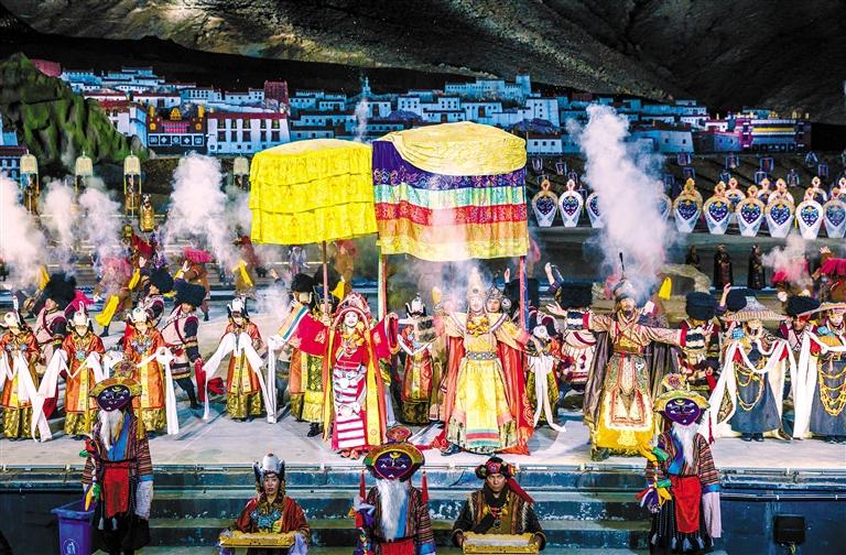 《文成公主》大型實(shí)景劇以文成公主入藏為主題,以鑄牢中華民族共同體意識為根本遵循,講述文成公主與松贊干布聯(lián)姻、促進(jìn)民族融合發(fā)展的故事,展現(xiàn)新時(shí)代新西藏的獨(dú)特魅力和繁榮景象。12年來,該劇累計(jì)演出2100多場,演出及園區(qū)旅游配套累計(jì)接待觀眾游客超3200萬人次,為當(dāng)?shù)厝罕姲l(fā)放薪資超5億元。