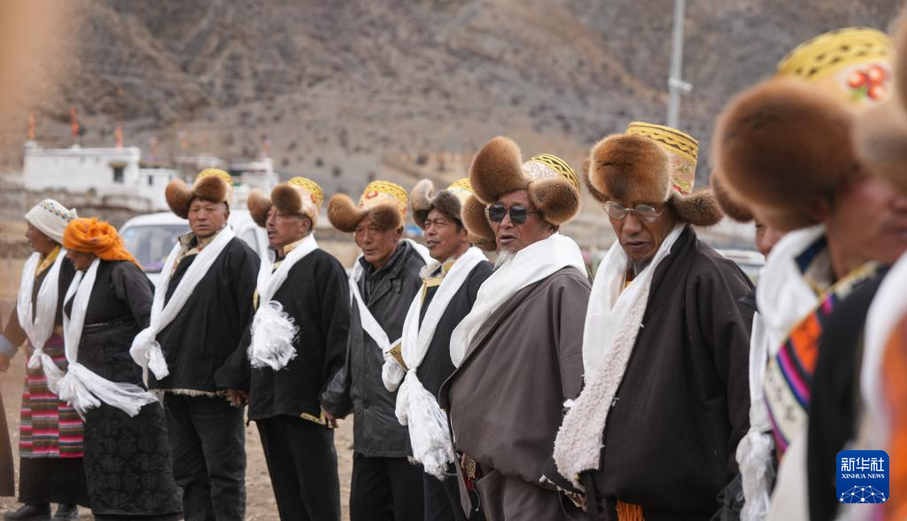 旺慶老人(左七)在春耕大典上唱頌詞(3月16日攝)。新華社記者 晉美多吉 攝