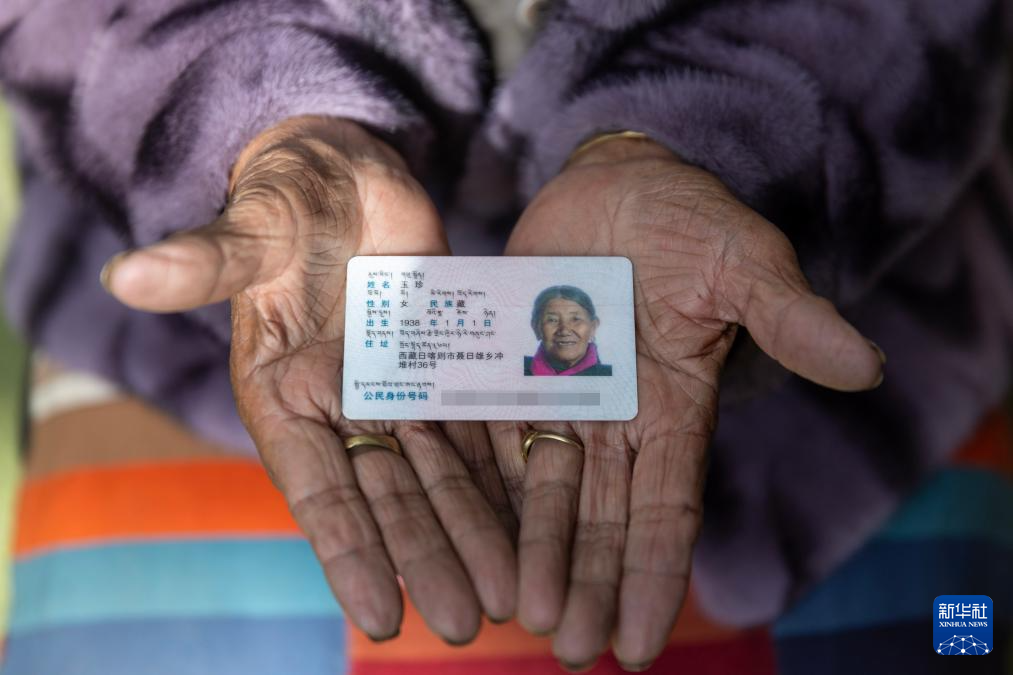玉珍老人在展示自己的身份證(3月17日攝)。新華社記者 姜帆 攝