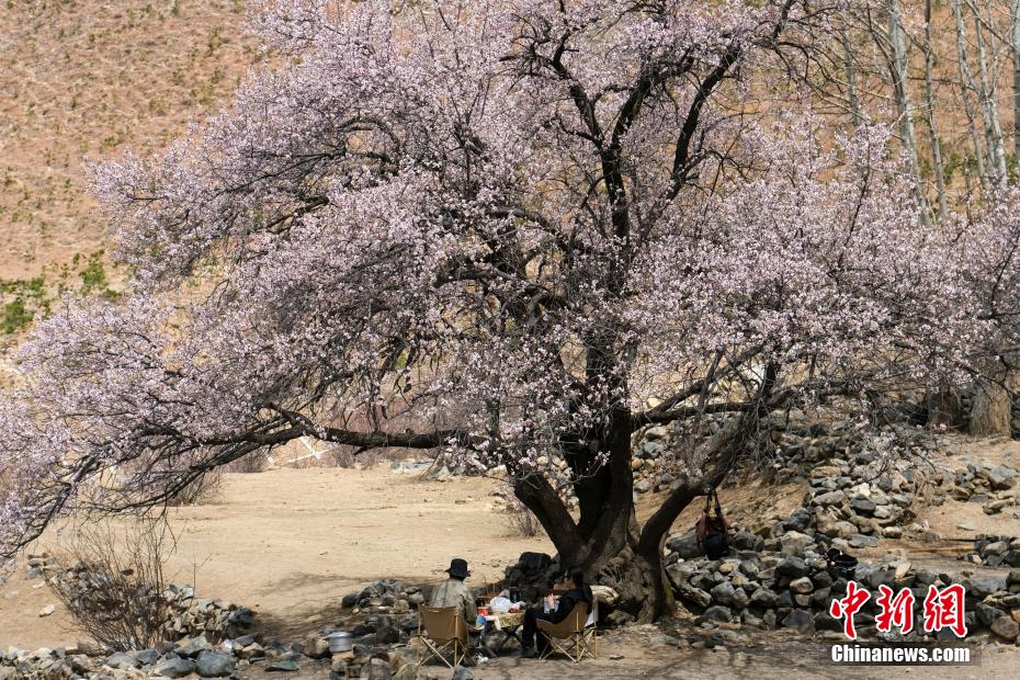 3月下旬,高原已是一片春意。西藏拉薩市區(qū)拉薩河南岸慈覺林的古桃樹進入盛花期,3月30日恰逢周末,不少市民游客前往賞花“打卡”,在桃樹下野餐等,享受高原春日風光。圖為3月30日,民眾在拉薩慈覺林桃花樹下野餐,享受悠閑時光。江飛波 攝