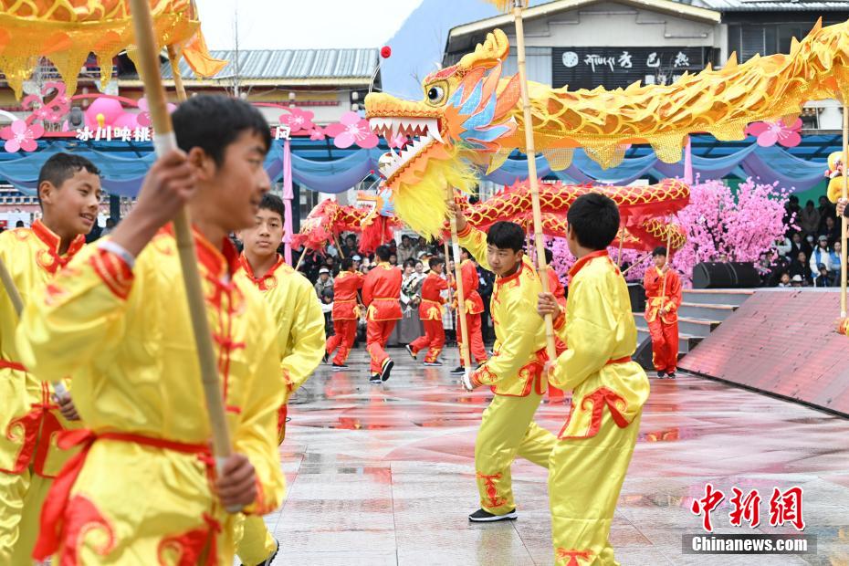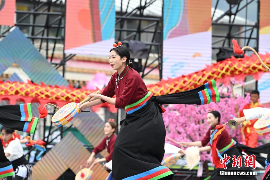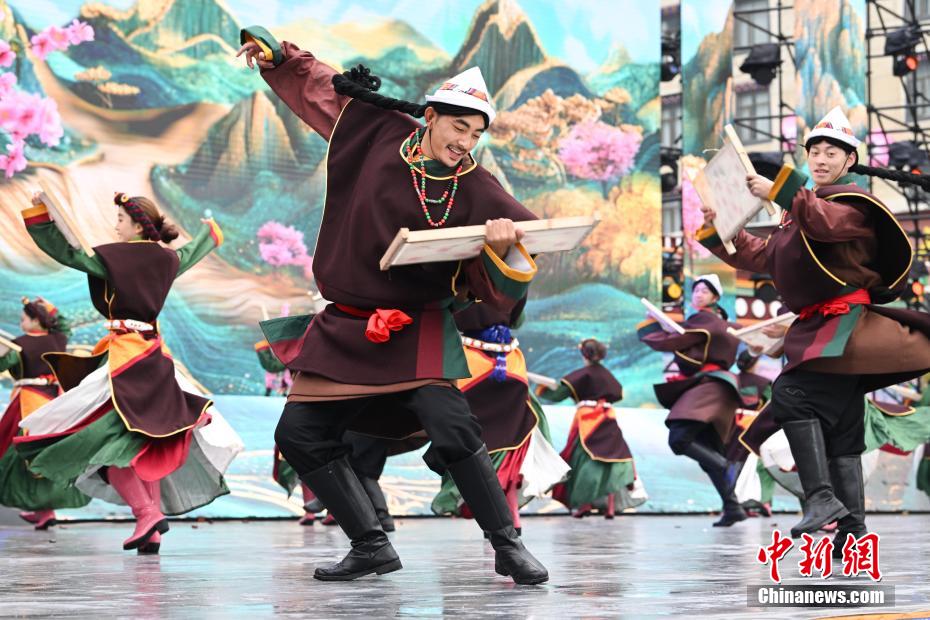 4月1日,西藏自治區(qū)林芝市第二十二屆桃花旅游文化節(jié)波密縣分會場熱鬧開場。本次分會場以“冰川映桃韻波密醉春風(fēng)”為主題,亮點紛呈。開幕式上,極具特色的西藏原生態(tài)歌舞、非遺藏紙舞蹈,生動演繹出雪域文化的迷人風(fēng)情;嶺南龍獅與藏族熱巴鼓相遇,剛?cè)岵囗懨褡鍒F結(jié)的和諧樂章;“冰川王子”與“桃花仙子”領(lǐng)舞,各族民眾翩然起舞,現(xiàn)場氣氛熱烈?;顒蝇F(xiàn)場,除了精彩文藝演出,特色美食、民俗文化展示區(qū)也吸引眾多游客駐足。大家一邊品嘗當(dāng)?shù)孛朗常贿吀惺苊袼孜幕攘?。?jù)悉,桃花節(jié)將持續(xù)至4月中旬,期間波密縣還安排多場專題活動,誠邀各地游客前來,共赴這場春日浪漫之約。圖為開幕式上表演的舞蹈《鼓韻花開龍獅賀》。中新社記者 貢嘎來松 攝