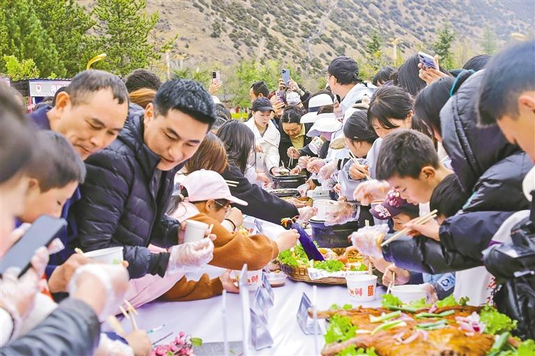 圖為在活動現場,市民和游客品嘗林芝特色菜。記者 劉楓 謝筱純 攝