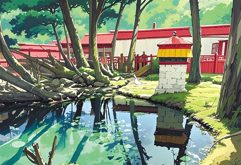 三個(gè)放學(xué)歸來(lái)的孩子蹲在石板邊,用泉水沖洗沾滿泥土的手,水珠順著手指滴落時(shí),忽然有斑頭雁群掠過(guò)泉面上空。他們屏息凝望的瞬間,宮崎駿動(dòng)畫(huà)中常見(jiàn)的“萬(wàn)物有”氣息,正從濕地里蒸騰的水霧中悄然漫出。