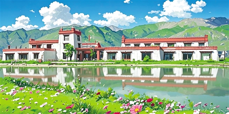 “我就是想以動(dòng)畫(huà)風(fēng)格給大家展示不一樣的堆龍。”旦增拉姆說(shuō)。只見(jiàn)她又將照片導(dǎo)入AI圖片生成軟件內(nèi),AI自動(dòng)識(shí)別圖像元素——經(jīng)幡的布料特性、水流的物理參數(shù)、建筑材質(zhì)的反光數(shù)據(jù)。輕點(diǎn)“生成”按鈕,1分23秒后,一張動(dòng)畫(huà)風(fēng)格的Shadada CoffeeX新型公共文化空間的圖片便呈現(xiàn)在眼前。重點(diǎn)不是技術(shù),是審美把關(guān),旦增拉姆指著屏幕上的失敗案例:“AI把青稞田處理成糖果色卡通,把圖書(shū)館渲染成賽博朋克風(fēng)格。我每天要調(diào)整無(wú)數(shù)次參數(shù),就像教AI理解什么是藏地美學(xué)?!彼米瞵F(xiàn)代化的數(shù)字工具,“描繪”著堆龍德慶區(qū)新的光影詩(shī)篇。