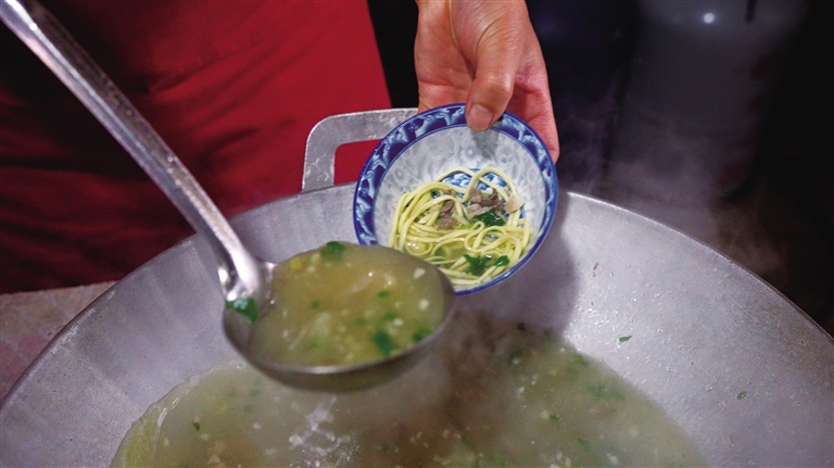 2010年,鹽井加加面被列入西藏自治區(qū)級(jí)非物質(zhì)文化遺產(chǎn)代表性名錄。37歲的果拉卓瑪,是這項(xiàng)技藝的傳承者之一。她回憶道,早年父母在街邊支攤賣面時(shí),加加面只是再尋常不過的一道家常面食。如今,這碗面被賦予了文化符號(hào)的意義——食客們比拼碗數(shù),最高紀(jì)錄達(dá)147碗,若破紀(jì)錄,還能終生免費(fèi)吃面?!笆^計(jì)數(shù)、民歌敬酒,這些傳統(tǒng)習(xí)俗讓吃面變成了一場(chǎng)熱鬧的儀式?!惫楷斝χf(shuō)。