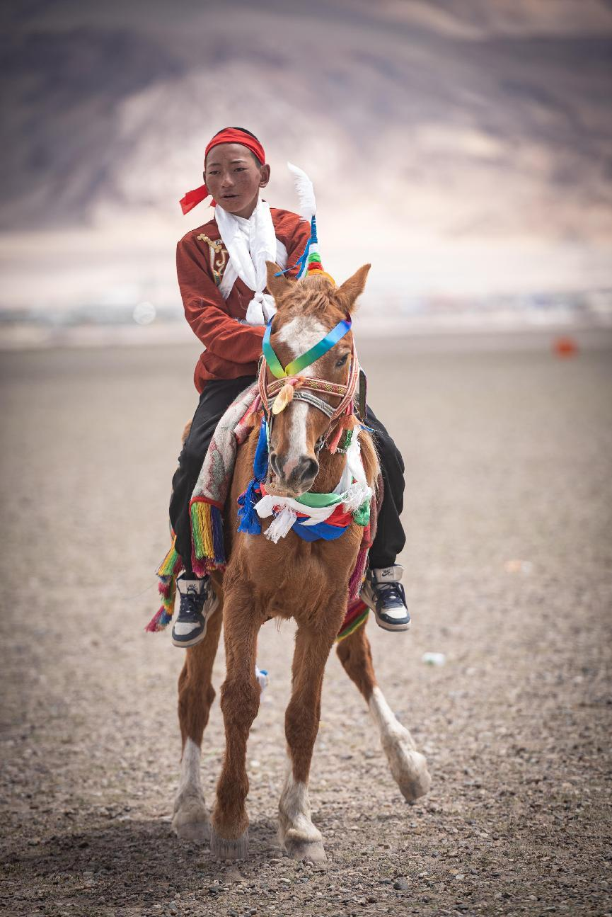 作品簡(jiǎn)介(作者自述):賽馬是一項(xiàng)技巧性的運(yùn)動(dòng),也是每年林周縣望果節(jié)最為隆重的一項(xiàng)體育活動(dòng)?;顒?dòng)一般以鄉(xiāng)為單位,各鄉(xiāng)選出優(yōu)秀的騎手和馬匹統(tǒng)一到指定的鄉(xiāng)進(jìn)行比賽。此組照片為首屆彭域熱柏久賽馬節(jié)隆重舉行。