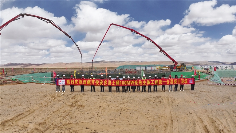 安多土碩光熱光伏一體化項(xiàng)目聚光集熱塔基礎(chǔ)完成第一倉混凝土澆筑。圖由趙苑余提供