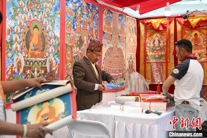 圖為拉薩進口商品展覽會現(xiàn)場,尼泊爾商人在整理商品。中新社記者 貢嘎來松 攝