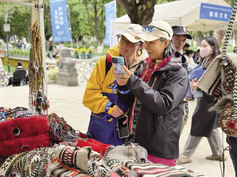 在西藏“非遺”文化體驗(yàn)區(qū),來自湖南的游客張麗一邊挑選包包一邊感嘆:“哇噻,真的太神奇了!沒想到牦牛毛還可以做成這么漂亮的包包,我要多買幾個(gè)帶回去給朋友。還能把這份獨(dú)特的文化記憶帶回家?!?/p>
